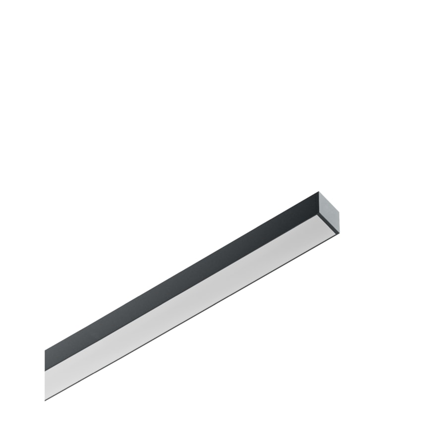 The ADELE.26 surface-mounted ceiling luminaire, linear in design, is ideal for indoor environments, providing downward light projection. Made of extruded aluminum, it features an opal or black polycarbonate diffuser and is available in white, gray, satin gray, brushed, graphite, and black, as well as other RAL colors. The power supply is included, but not integrated, offering greater flexibility. It can be installed in continuous lines of desired length, allowing the addition of various modular accessories, such as projectors or lenses.